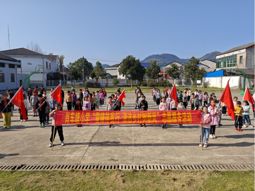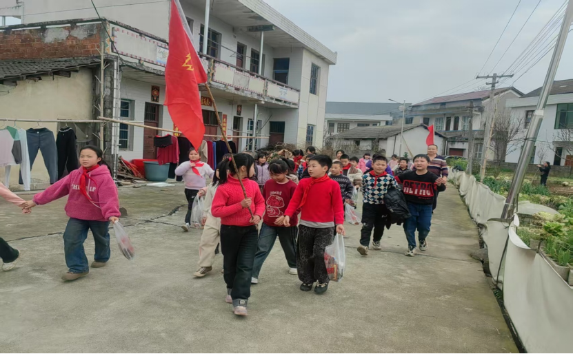 3 月25日,九峰小学还组织了学雷锋活动,师生们分三路队走进乡间地头,开展捡垃圾、卫生打扫活动。第一路队来到村口的稻田边,清理田边的垃圾;第二路队走进乡村小道,捡拾路边的杂物;第三路队则来到村里的公共广场,打扫卫生。师生们不怕脏、不怕累,用实际行动践行雷锋精神,为乡村的环境美化贡献了自己的力量。他们的身影成为乡村最美的风景线,也感染了村民们,让环保意识深入人心。