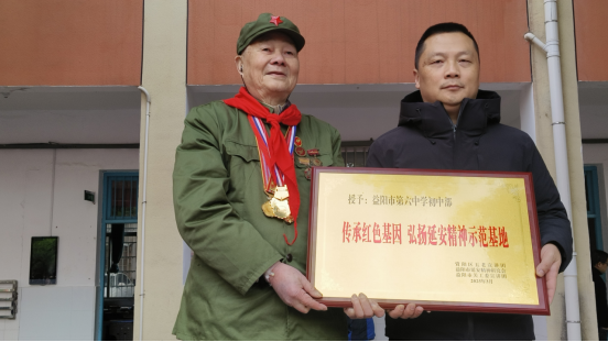 师生还观看湖南电视台拍摄的李仲国的先进事迹视频,活动授予学校“传承红色基因,弘扬延安精神示范基地”称号。