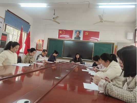 为提升教学质量,优化教学方法,4月1日,南县茅草街中学语文组开展了一场针对学生作业、作文及日常教学等方面的专业培训活动。此次活动由语文教研组长冷文静牵头,全体语文教师积极参与。