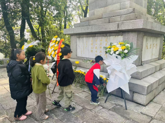 活动现场,学生们整齐列队,手捧鲜花,迈着整齐的步伐,向纪念碑庄重前行,并将鲜花敬献于碑前。朵朵鲜花承载着同学们对先烈的无限敬仰与感激,寄托着深沉的追思。献花仪式结束后,全体学生向纪念碑鞠躬默哀,现场气氛庄严肃穆。