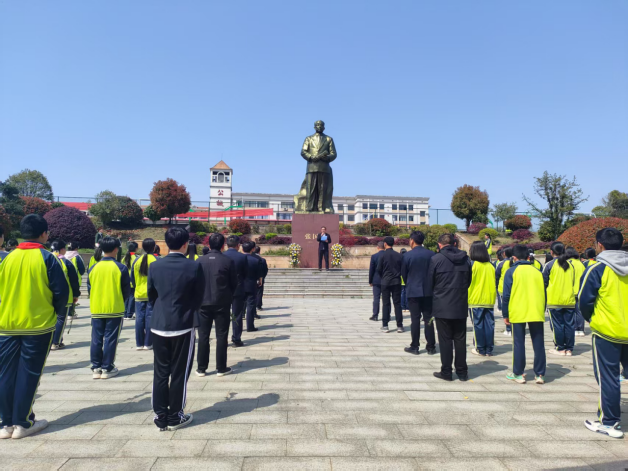 仪式开始,4名学生代表敬献花篮,全体师生默哀一分钟。学校党支部书记校长张团芳在致辞中强调,清明追思不仅是缅怀,更要将张国基先生“以文化人,以德育才”的理念化作新时代教育改革的动力。学生代表讲话表示,将记住这庄严的时刻,继承先烈遗志,领悟其艰苦奋斗的精神,珍惜今天来之不易的幸福生活,树立远大理想,好好学习,争取早日成材。