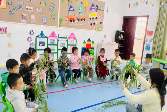 迎风桥镇中心幼儿园:清明插柳戴柳,传承古韵新风