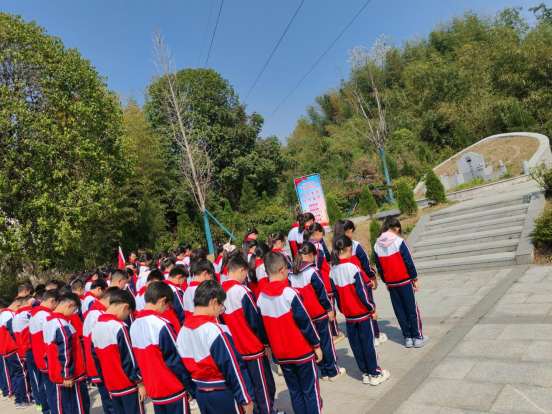 上午9时许,祭扫仪式在丰堆仑革命旧址广场正式开始。少先队员们整齐列队,胸前红领巾与陵园内青松翠柏交相辉映。在激昂的国歌声中,全体师生面向廖连山烈士之墓碑行注目礼。随后,少先队员代表缓步上前,向烈士敬献花篮,鲜艳的红色缎带上“革命烈士永垂不朽”八个金色大字格外醒目。