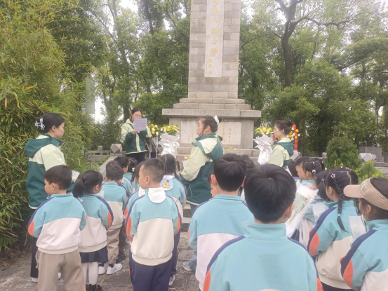 上午9时,师幼代表整齐列队于纪念碑前。通过敬献鲜花、集体默哀、瞻仰纪念碑等环节,孩子们在肃穆的氛围中感受先烈们的英勇事迹。教师代表现场宣读曾士峨烈士祭文,教学主任以童趣化的语言传递红色精神。