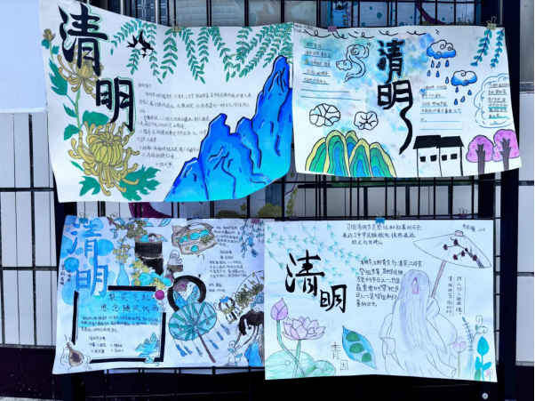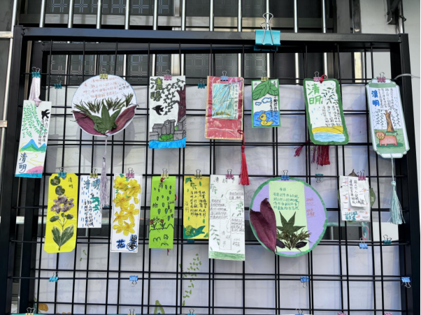 中年级学生开展“自然与艺术融合,巧手寄情思”主题活动。同学们通过收集花瓣、树叶等材料制作创意书签。全校共提交60份优秀作品,部分书签融入清明诗词,并配以“铭记先烈”“珍惜春光”等寄语。