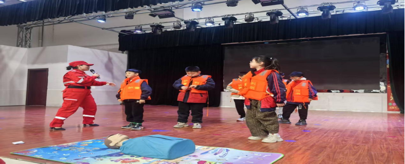 4月7日,学校邀请益阳蓝天救援志愿者协会成员到校为学生开展防溺水演练,专业救生员现场演示了正确的自救与互救技巧,包括如何使用浮具自救、如何进行人工呼吸和心肺复苏等紧急救援措施。互动环节中,孩子们在救生员的指导下,积极参与模拟演练,亲身体验了这些救命技能的实际操作,既紧张又兴奋,收获颇多。