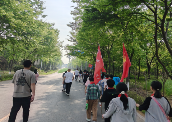 上午8点半,校长王小平带领着师生们从学校出发。队伍高举国旗和少先队队旗,徒步前往丰堆仑革命旧址。在这漫长的徒步中,师生们肩并肩、手挽手,共同前行。每一步都凝聚着对革命先烈的缅怀之情,每一滴汗水都彰显着对革命精神的传承之志。