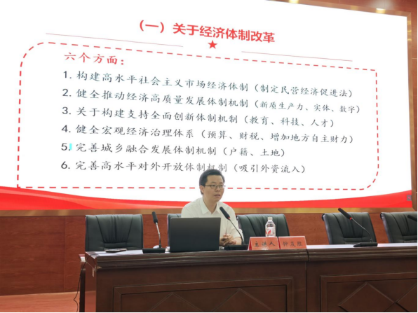 理论知识课堂上,资阳区教育局党组副书记、副局长钟友胜深入浅出,围绕党的二十届三中全会,从全会基本情况、习近平总书记重要讲话精神解读、《决定》中深化改革重大举措剖析,再到贯彻落实全会精神的具体路径,展开了一场精彩深刻的专题讲座。引领参培学员深度领悟习近平新时代中国特色社会主义思想的精髓要义,深入贯彻落实习近平总书记关于少年儿童和少先队工作的重要论述,系统回溯党团队发展历程,深入钻研少先队基础理论,为学员们筑牢信仰之基,补足精神之钙,坚定理想信念。