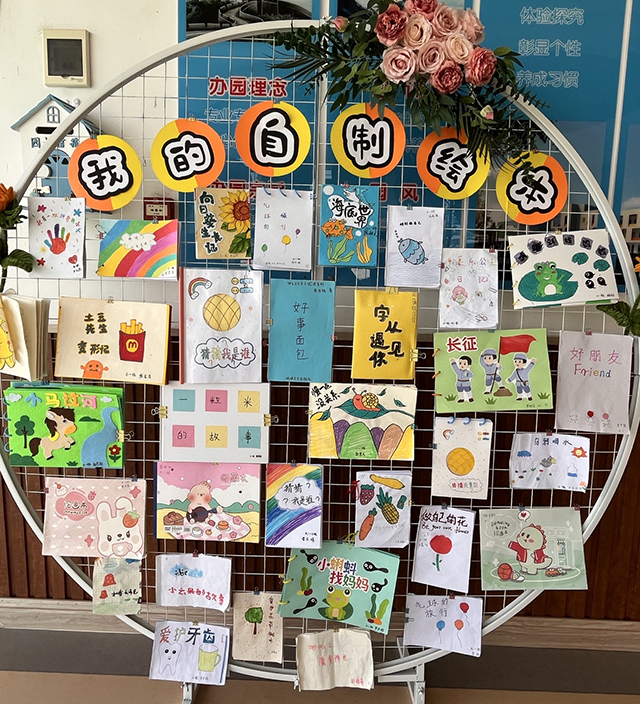为了激发孩子们的创造力和想象力,园所还鼓励家长与幼儿共同自制绘本。大家充分发挥创意,制作出了一本本精美的绘本。园所将优秀作品在园内展示,吸引了众多师幼驻足欣赏。