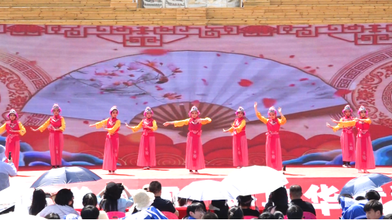 说》,把展演活动推向高潮。演员表演默契,他们惊艳华丽的扮相、青春亮丽的展示、韵味十足的唱腔、出色的表演,深深吸引着全场观众。幸福生活的美好愿望,蕴含着丰富的文化内涵,台上台下,一片欢腾,气氛活跃又热闹。