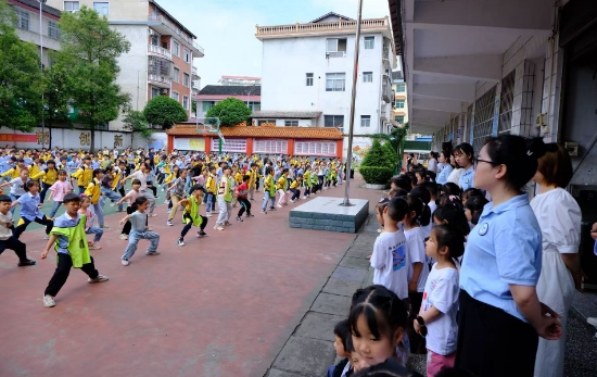 本网讯 5月16日,梅城镇紫云完小迎来了一群特殊的"小客人"——紫云幼儿园大班近百名萌娃。孩子们通过沉浸式体验感知小学生活,在趣味互动中架起幼小衔接的成长阶梯。 清晨,萌娃们在政教处主任贺小琴引导下开启校园探秘。文化墙上闪亮的荣誉榜、教学楼里琅琅的读书声、食堂飘散的饭菜香,无不让孩子们睁大好奇的眼睛。语文课堂化身"汉字魔法王国",教师以《我上小学了》为引,带领幼儿用身体拼摆汉字结构;数学课堂变身"规律探险营",孩子们通过破解"魔女之城"的水果密码、巨人指甲图案规律,在游戏中掌握逻辑思维方法。 大课间操成为萌娃们的欢乐时刻。伴随着动感音乐,一年级学生整齐划一的动作引得萌娃跃跃欲试。"原来当小学生要学这么多本领呀!"幼儿园大(1)班朵朵模仿着哥哥姐姐的动作,兴奋的小脸泛起红晕,围住老师追问:"什么时候能天天来这里上学?" 紫云幼儿园园长谭海英表示:"当孩子们主动整理参观手记,能清晰描述小学与幼儿园的区别时,我们深知这场教育‘破壁行动’意义深远。"活动结束,萌娃们告别时的声声"再见",恰似对金秋重逢的温暖约定。 初审:陶明君 复审:姜伟光 终审:李兴家