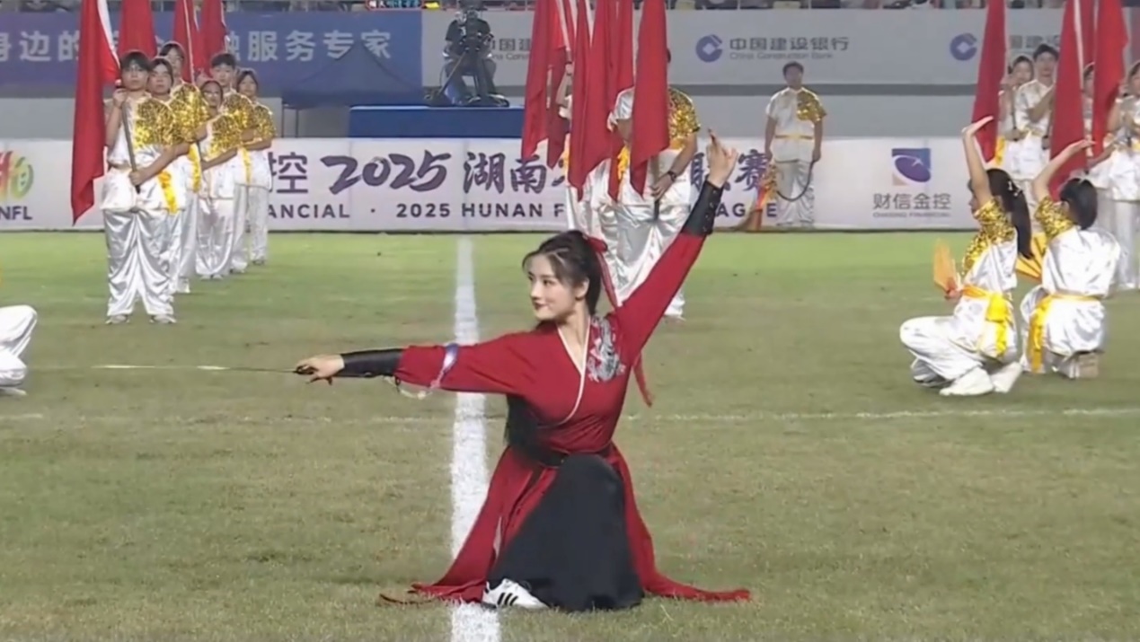 尤为难能可贵的是,《旌鼓凌云 武韵中华》这场演出,巧妙地将武术、旗舞、扇舞等传统元素与现代体育竞技相结合,生动展示了益阳地区积极向上、崇文尚武的风土人情与文化底蕴,为湘超联赛注入了独特的地域魅力。
