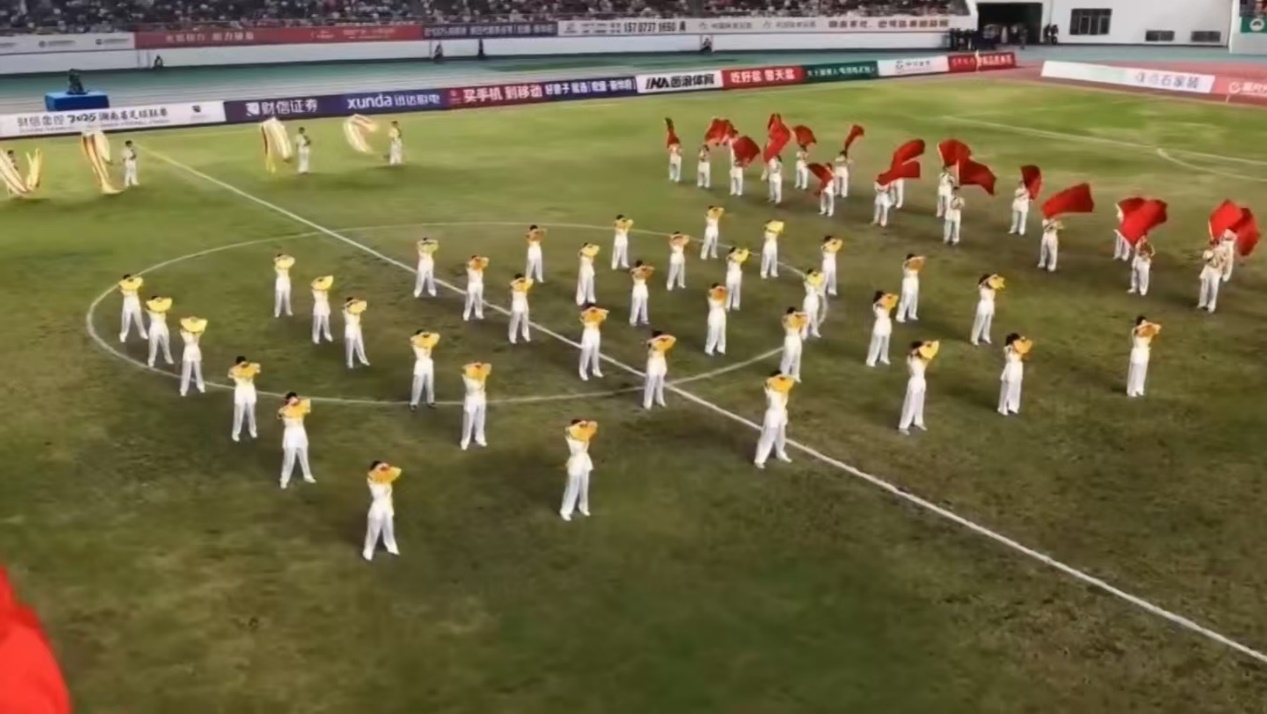旌鼓凌云 武韵中华 青春悦动 闪耀湘超——益阳十四中学子开幕式表演点燃足球激情