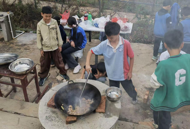 本网讯(通讯员 郭映)10月15日,南嘴镇羊婆小学六年级的同学们在劳动实践基地开展了一场别开生面的野炊活动,在烟火缭绕与欢声笑语中,上了一堂生动的劳动实践课。