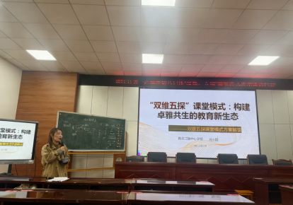 桃花江镇中心学校(本部)教科室主任刘小阳详细解读 “双维五探” 课堂模式,强调该模式以 “卓维和雅维”为目标,通过“探疑、探理、探法、探情、探行”五个环节培养学生自主学习能力,而 AI 技术正是实现这一目标的重要支撑,能让“五探”环节更精准、更高效。
