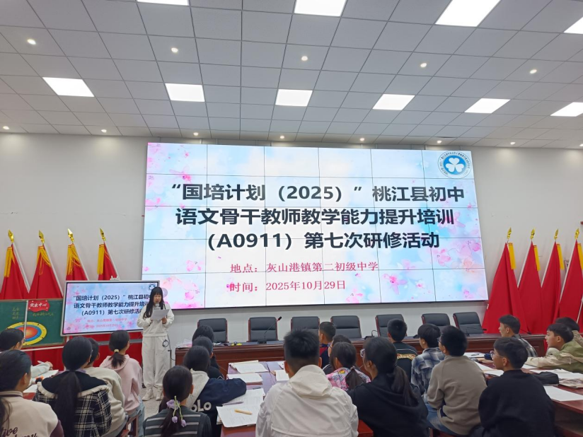 国培计划送教下乡,推动初中语文读写融合。近日,“国培计划(2025)”桃江县初中语文骨干教师培训送教下乡活动在灰山港镇二中开展。活动以“单元整体教学视域下读写融合”为主题,通过课例展示、专题讲座与同伴研讨,探索教学实践优化路径。吴娉、鲁健等四位教师进行公开课展示,搭建读写结合桥梁;周张武、文婧等教师分享课例,引发深度探讨。