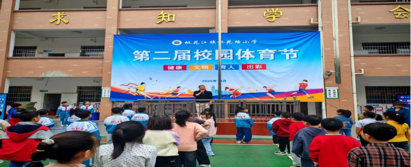 与此同时,桃花路小学第二届体育节也在火热进行中。短跑赛道上,运动员们如离弦之箭,奋力冲刺;接力赛中,同学们默契配合、奋勇争先;拔河比赛时,队员们紧握长绳、齐心协力,呐喊声、加油声震耳欲聋。