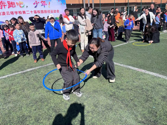 本网讯(通讯员 冯霞)为了促进学生身心健康和谐发展,增强家校之间的情感交流,11月19日,沅江市凌云塔学校开展了“大手牵小手,快乐动起来”亲子趣味运动会。