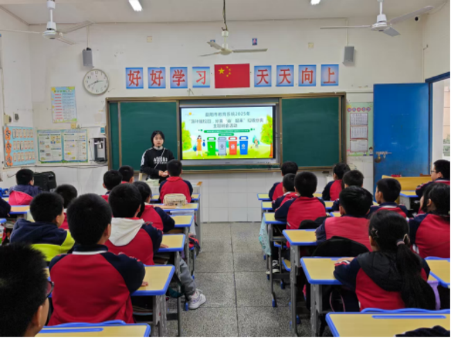 活动期间,该校依托多种形式展开宣传教育。中午红领巾广播时间结合德育“六个一”之“一周一讲”,系统介绍垃圾分类的重要性及基本分类方法。各班利用班会课,通过PPT、视频、实物演示等方式讲解分类知识,并融入儿歌、故事等形式,让学生在轻松愉快的氛围中加深对垃圾分类知识的理解。该校还鼓励学生利用废旧物品进行创意手工制作,将废纸盒、塑料瓶等改造为笔筒、花盆等实用物品。学生作品在班级内展示交流,既锻炼动手能力,也深化了对资源再利用的认识。