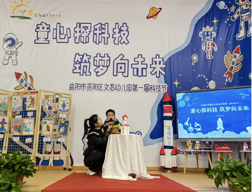 本网讯(通讯员 张芬)2025年12月31日,资阳区文昌幼儿园“童心探科技,筑梦向未来”第一届科技节闭幕式暨亲子科技作品展评活动圆满举行。