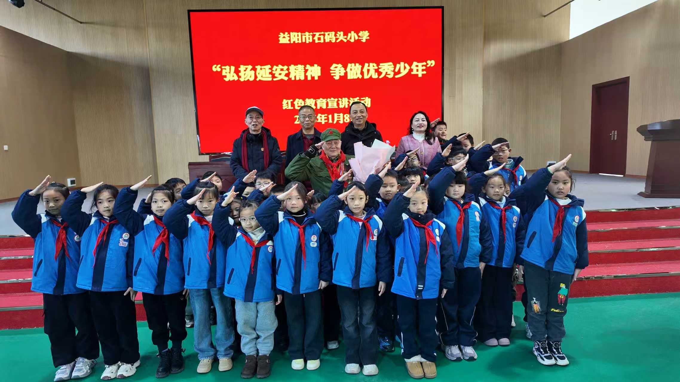 1月8日,“延安精神”走进益阳市石码头小学。李仲国老战士为学校授示范基地牌匾,学校党总支书记钟国滨上台接牌,标志着校社联动的红色教育阵地正式落地,为常态化开展红色教育筑牢根基。