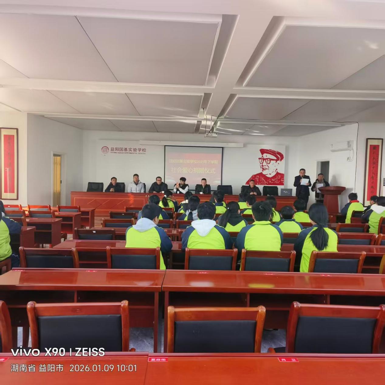 本网讯(通讯员 田燕兵 崔炫)冬日暖阳暖人心,爱心捐赠情意浓。2026年1月9日,益阳国基实验学校五楼大会议室温情涌动,优秀毕业学子爱心捐助仪式在此温情起航。本次捐助仪式由该校优秀毕业学子陈一波、郭航宇发起,旨在为校内贫困学子送去关怀与支持,同时回报社会。