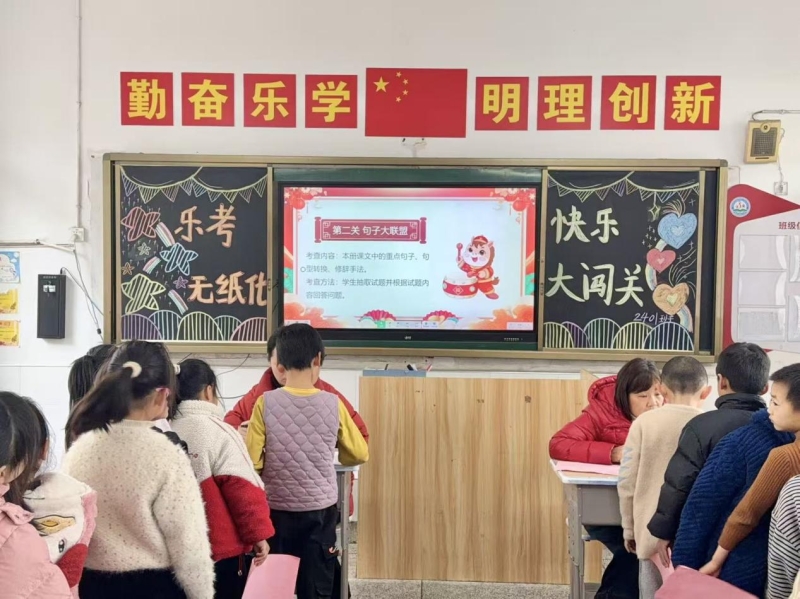 1月27日,新桥河镇龚家坪小学紧扣“勤学乐思 博才笃行”校训,为一、二年级学生开展无纸化测试,以趣味闯关形式落实“双减”政策,让孩子们在轻松氛围中展现学识与活力。