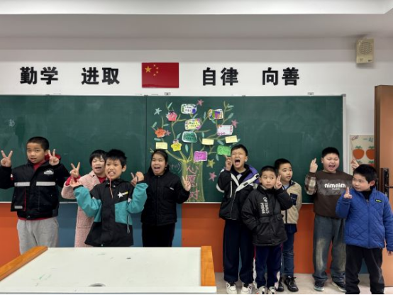 在心愿卡制作环节,学生们在老师的帮助下于卡片上写下或画出对孤独症同伴的祝福,以及对自己行为的承诺,笔迹虽然稚嫩,但其中蕴含着对同伴真心的关切。所有心愿卡被粘贴在班级展板上,汇聚成一棵由全体特需学生共同完成的“星愿树”,这棵大树象征着每一个孩子都是一颗独特的星星,只要用真诚和善良点亮彼此,便是最闪亮的光。