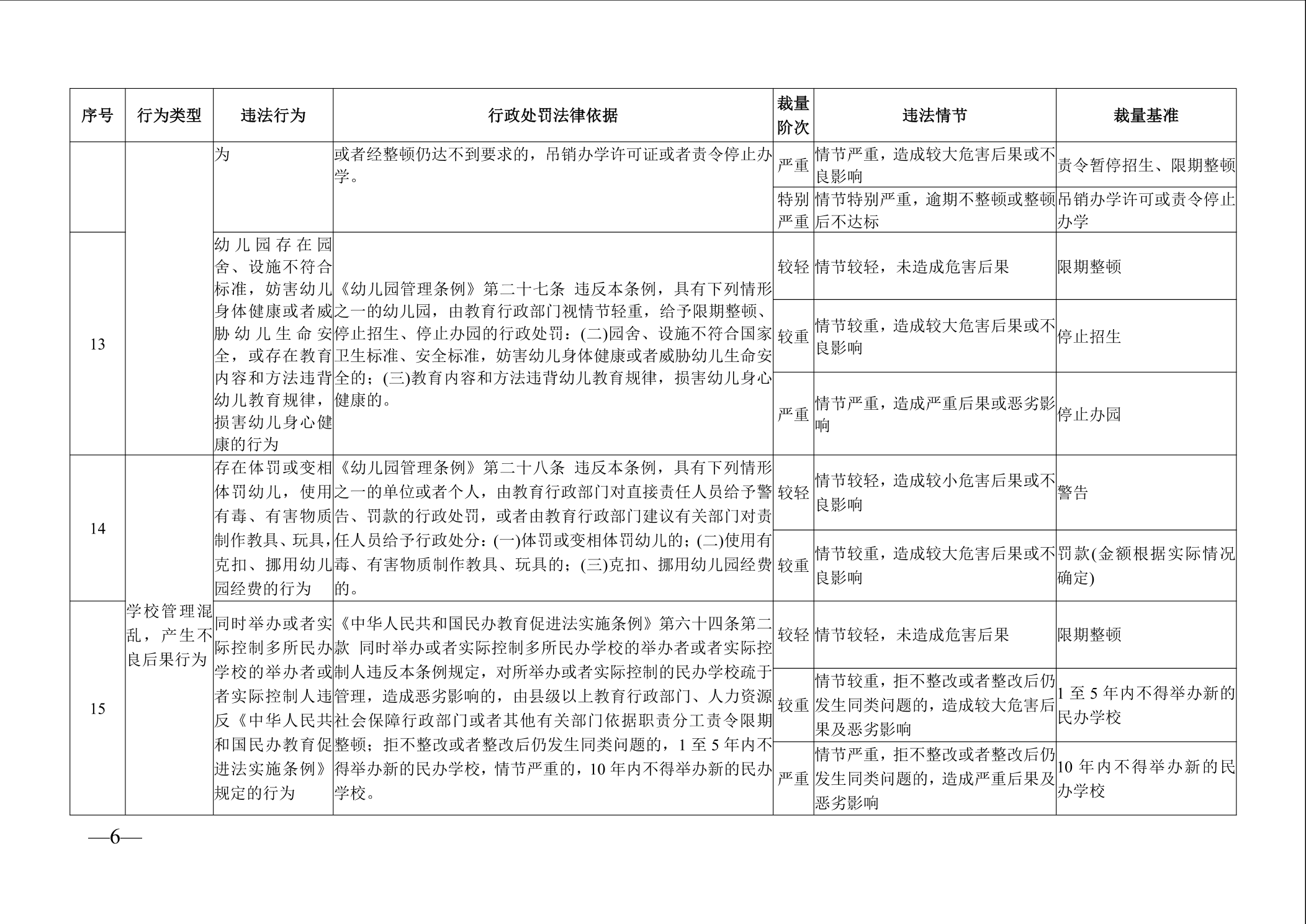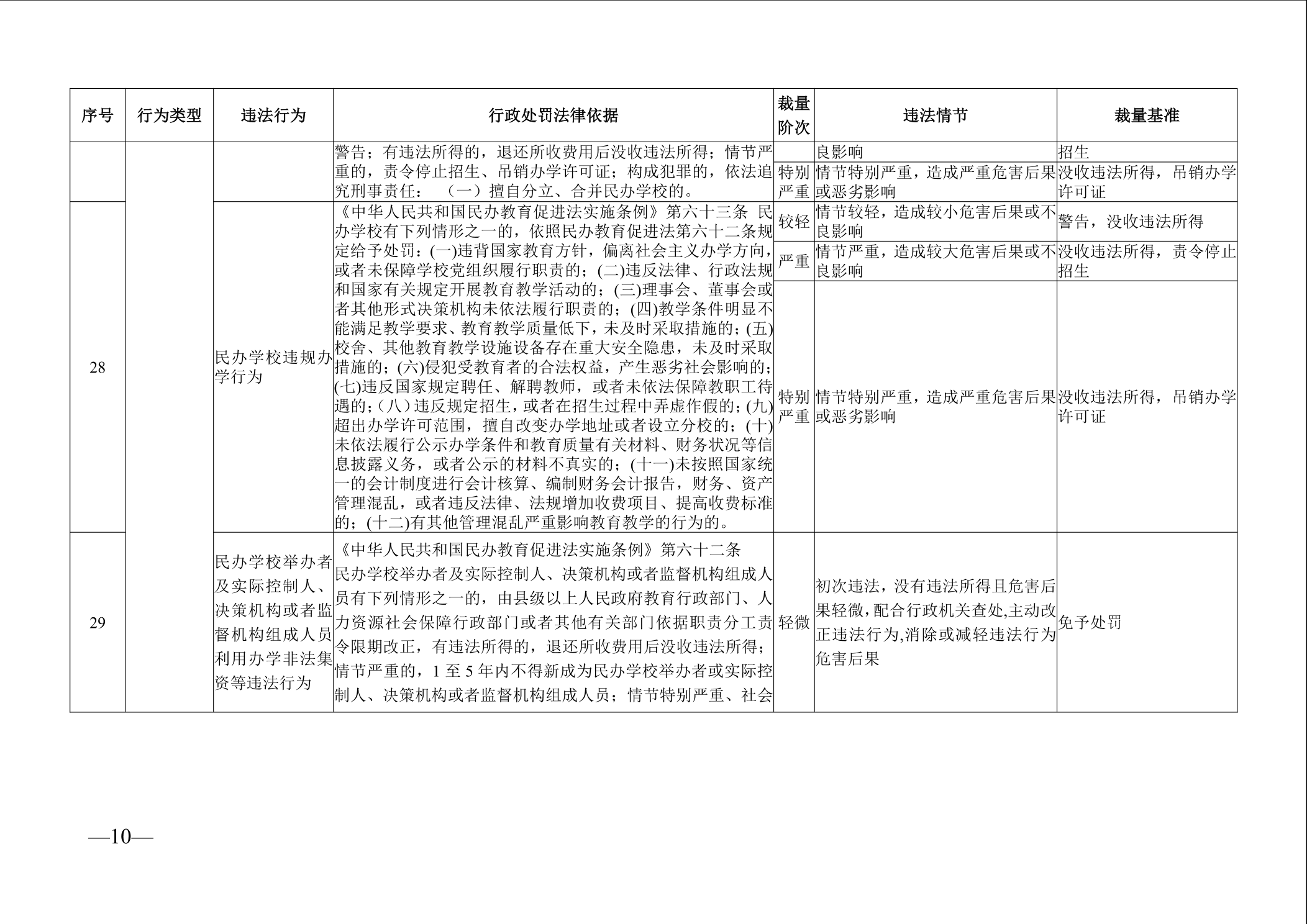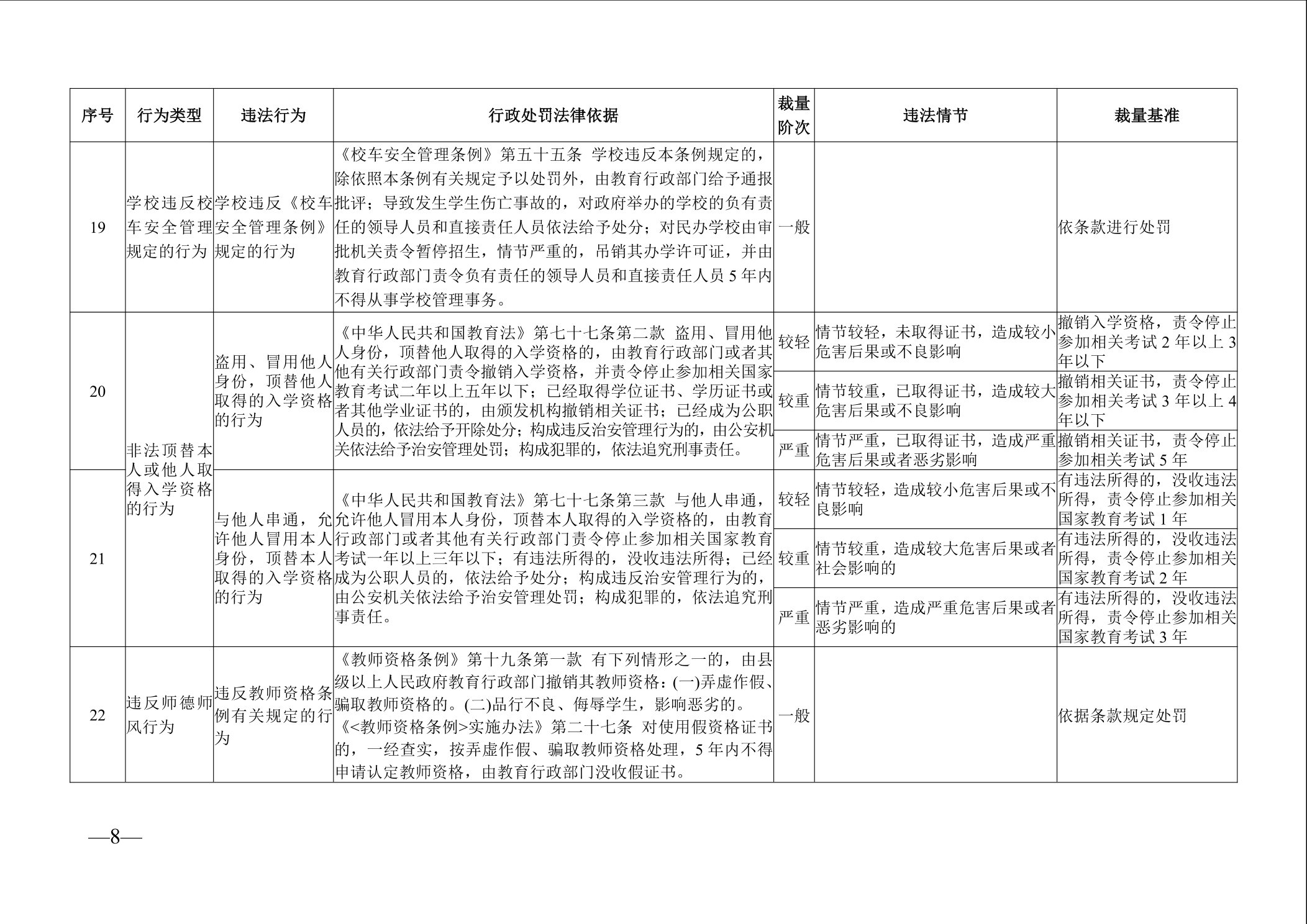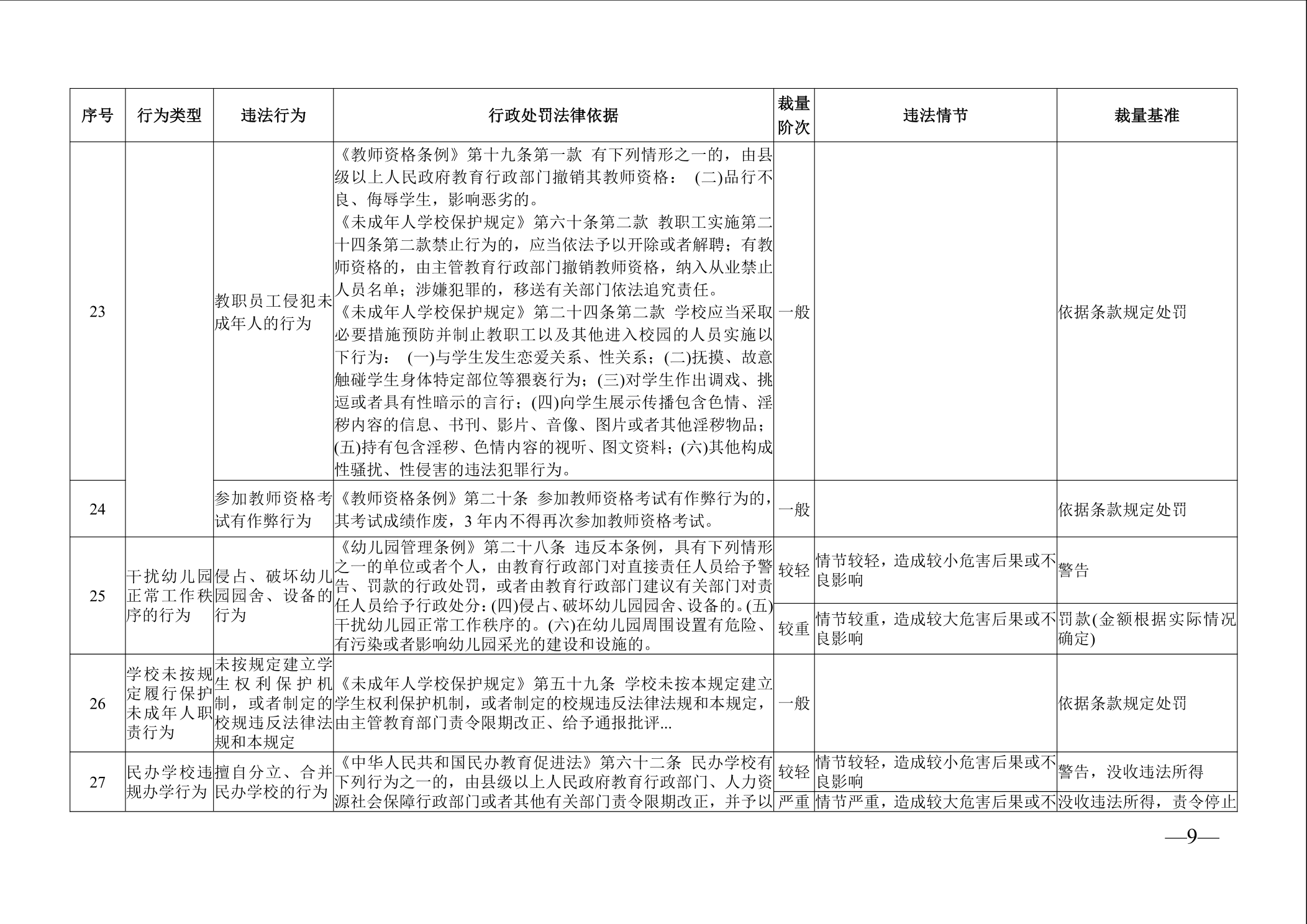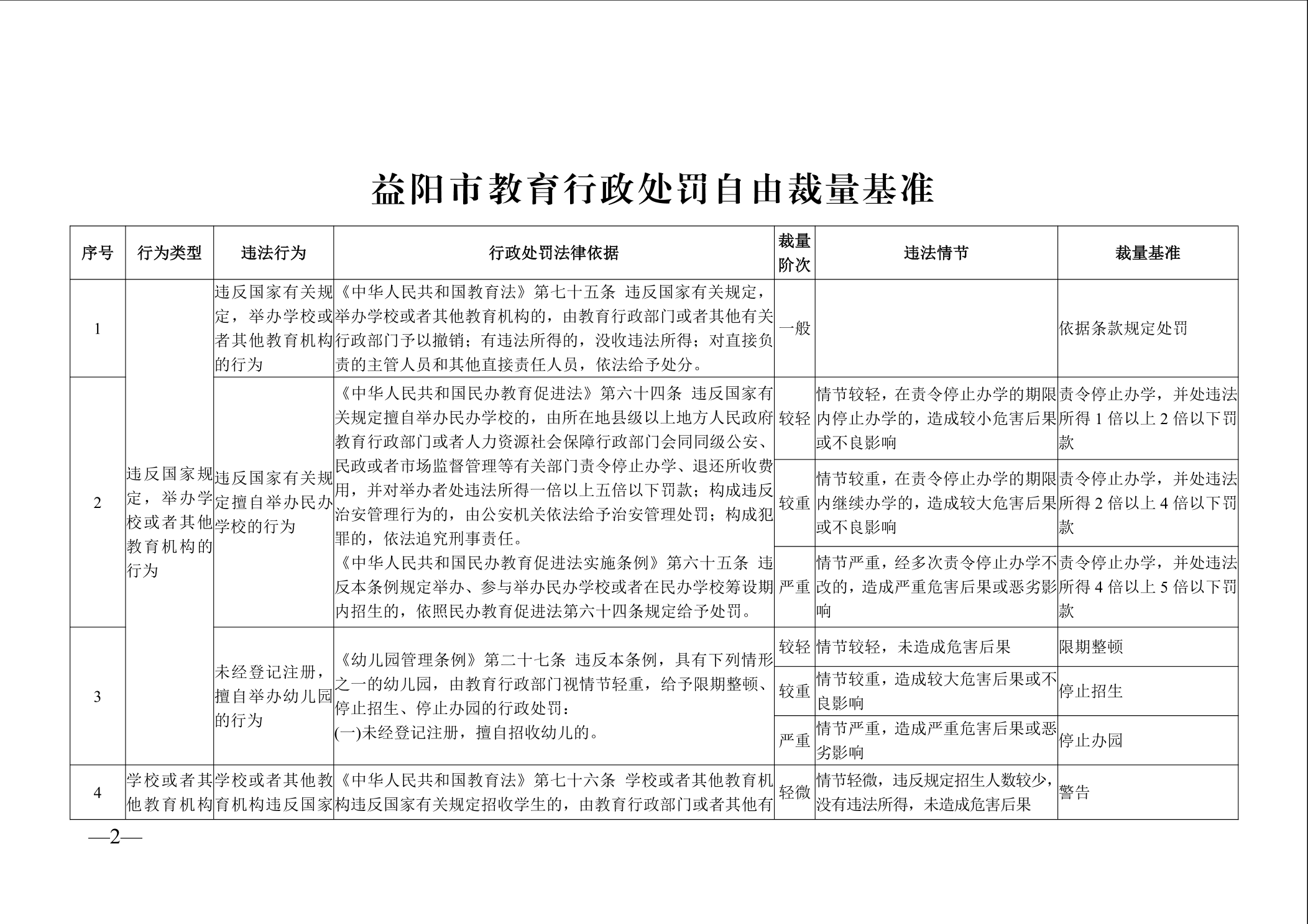 关于印发《益阳市教育行政处罚自由裁量基准》的通知