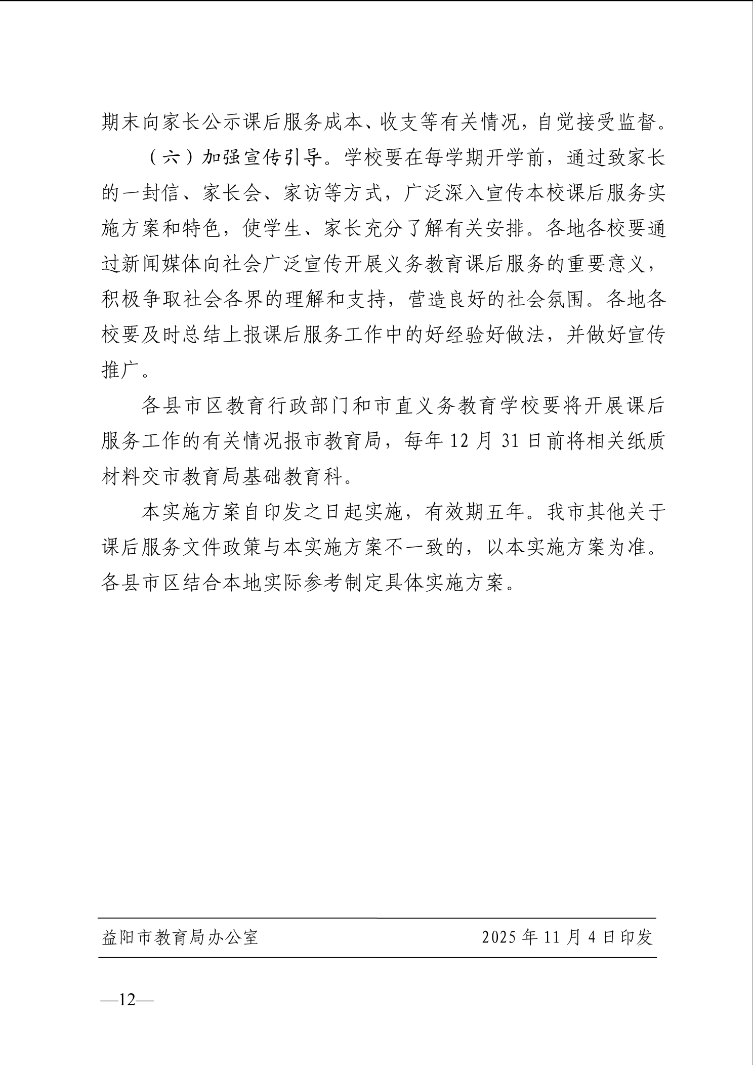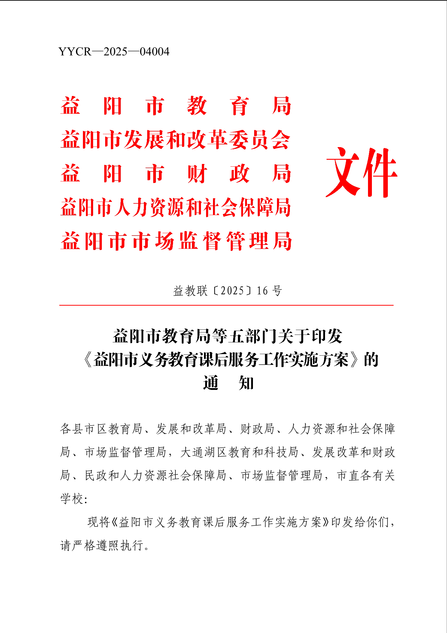 益阳市教育局等五部门关于印发《益阳市义务教育课后服务工作实施方案》的通知